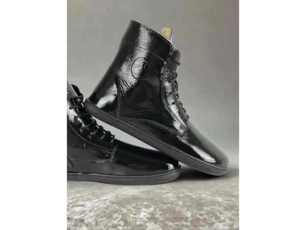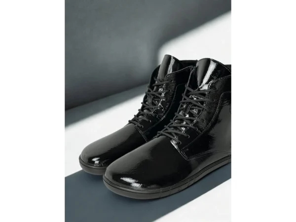 Venero je uniseks jesensko-zimski barefoot model profinjenog Oxford dizajna do gležnja. Izrađen od luksuzne lakirane kože s decentnim naborima i podstavom od 100% ovčje vune s vodootpornom membranom, pruža toplinu, udobnost i zaštitu od vlage. Fleksibilan potplat, široki prednji dio i nulta peta omogućuju prirodan korak uz besprijekoran, elegantan izgled.